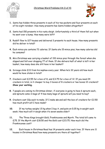Christmas math worksheets word problems