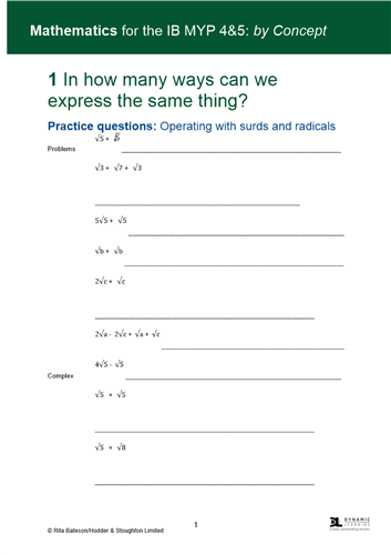 Myp 5 math worksheets